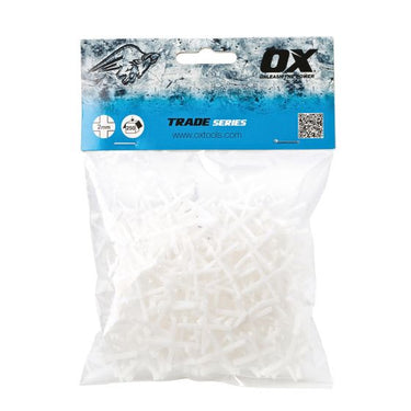 De OX Tools Trade Tegelkruizen zijn hoogwaardige afstandhouders die zorgen voor een nauwkeurige en consistente voegbreedte bij het leggen van tegels. Met een verpakking van 250 stuks en keuze uit 2mm, 3mm of 4mm, zijn deze tegelkruizen geschikt voor diverse tegelprojecten.