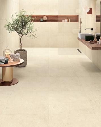 Een lichte, natuurlijke tegel die zorgt voor een warme basis en een open, ruimtelijk gevoel in huis.