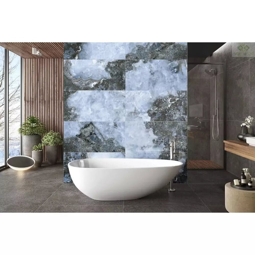 Deze tegel is perfect voor wie een statement wil maken met een unieke en stijlvolle wand of vloer. Dankzij de diepe blauwtint, de glanzende afwerking en het royale formaat ontstaat een onderhoudsvriendelijke ruimte die luxe, karakter en moderne klasse prachtig samenbrengt.