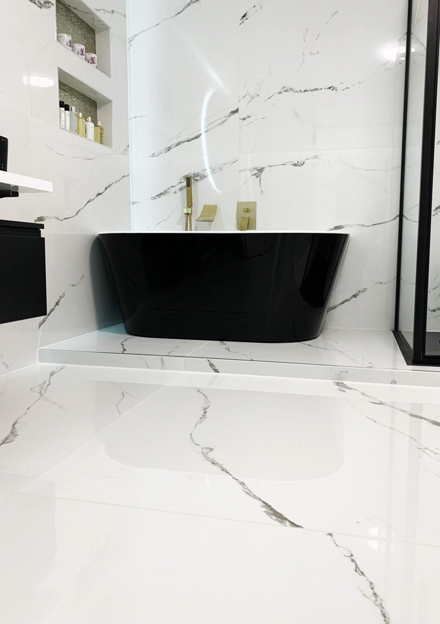 • Afwerking: glans – reflecteert licht en benadrukt de marmerlook