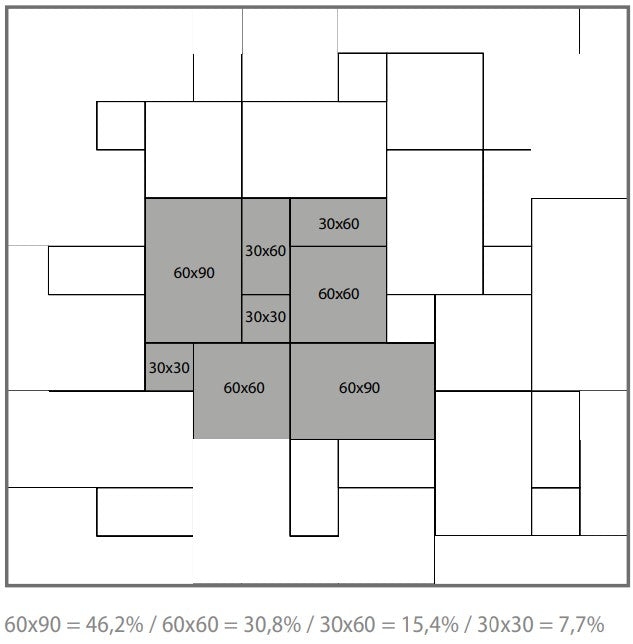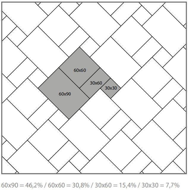 Het snijverlies bereken je aan de hand van het legpatroon en de oppervlakte. Doorgaans worden de volgende percentages aangehouden: