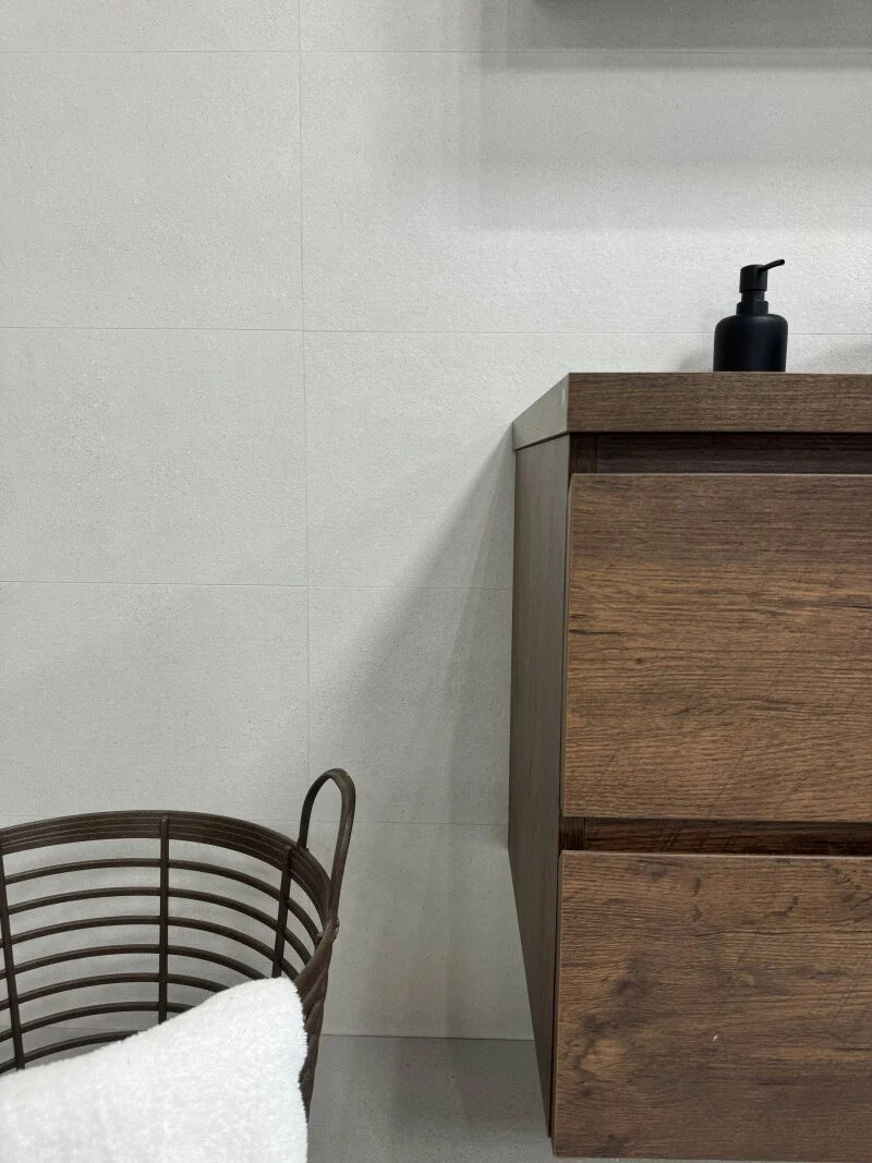 • Afwerking: mat – subtiele natuursteenstructuur in lichtgrijs