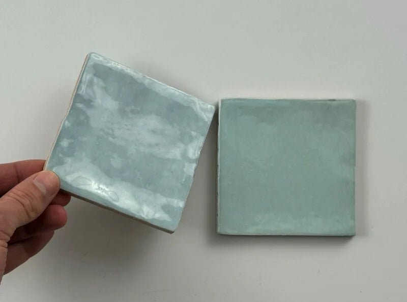 Stijl: handvorm-look – de onregelmatige randen en het golvende oppervlak geven de tegel een charmante, handgemaakte uitstraling die perfect past bij een boho, modern of mediterraan interieur.