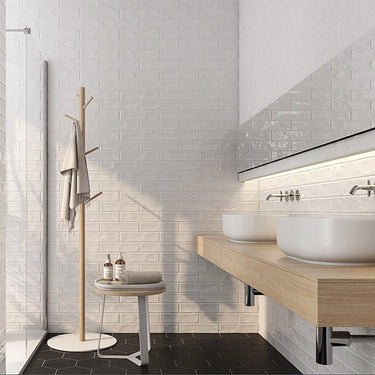 Deze tegel is ideaal voor wie een tijdloze en frisse wandafwerking wil creëren. Dankzij het langwerpige formaat en de glanzende afwerking ontstaat een onderhoudsvriendelijke wand die elegantie en klasse uitstraalt.