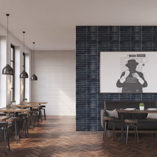 Deze tegel is ideaal voor wie een rustige, moderne en stijlvolle wandafwerking wil realiseren. Dankzij het langwerpige formaat en de matte blauwe stonelook ontstaat een onderhoudsvriendelijke wand die frisheid, elegantie en natuurlijke eenvoud perfect combineert.