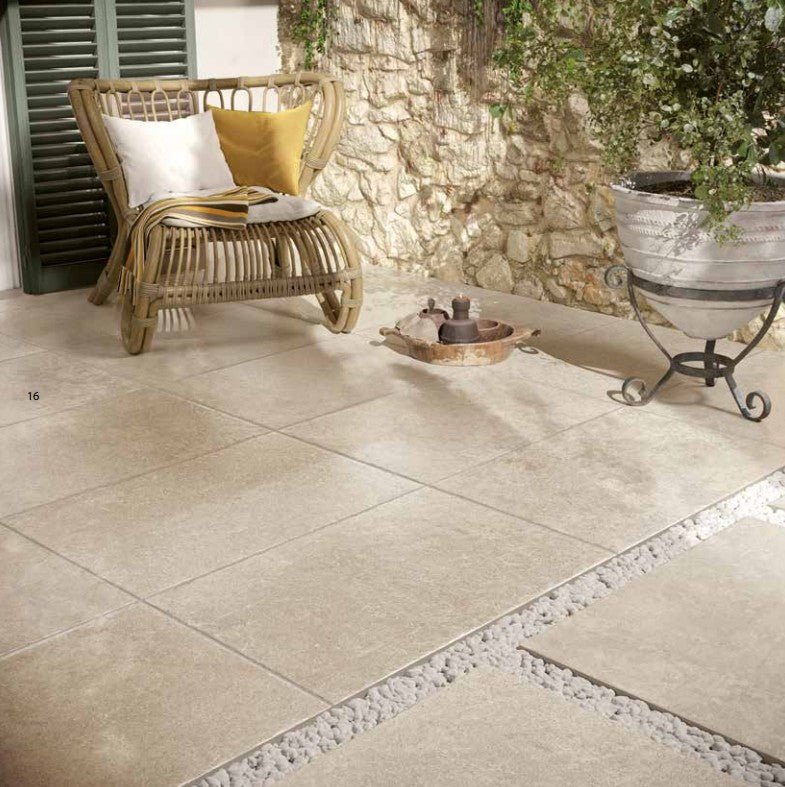 Kleur/stijl: crème natuursteenlook – lichte tint met natuurgetrouwe schakeringen
