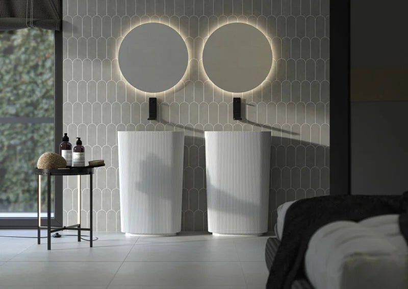 • Afwerking: mat – verfijnde betonlook in een zachte parelgrijze kleur