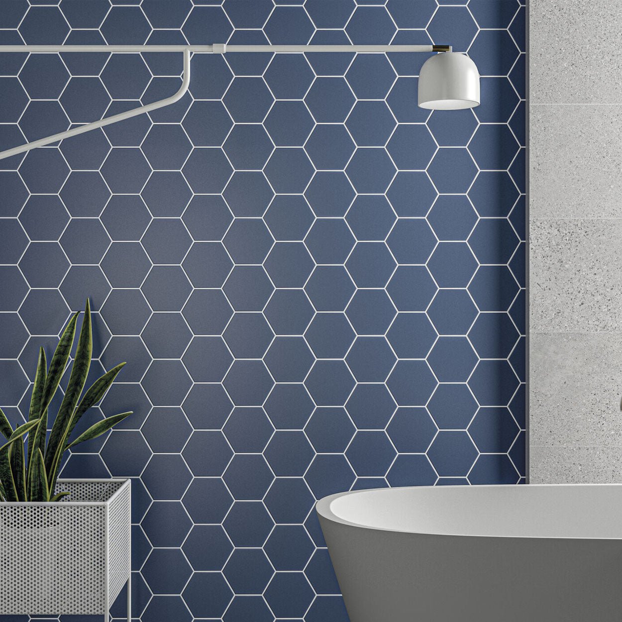 Vloertegel/Wandtegel Cifre Cerámica Hexagon Timeless Marine Donkerblauw Mat 15x17