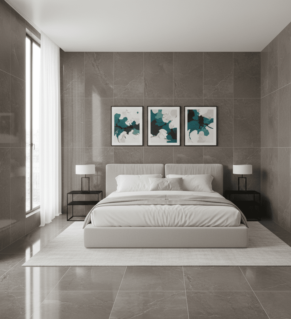 Formaat: 60x60 cm – een veelzijdig formaat dat zorgt voor een evenwichtig en rustig beeld op zowel vloer als wand