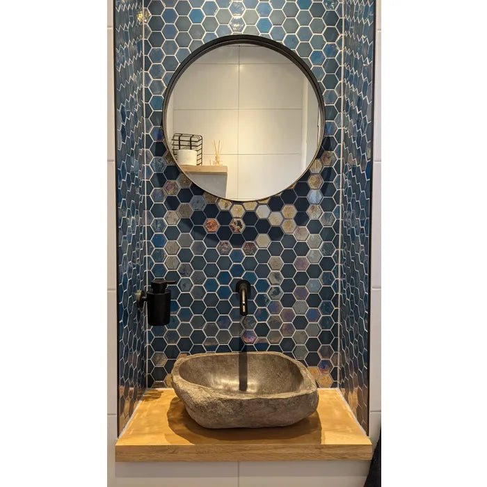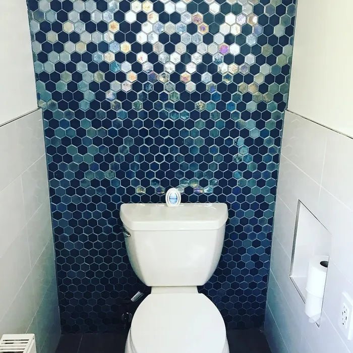 Naast de sprekende en stijlvolle esthetiek biedt dit keramische wandmozaïek superieure praktische voordelen. Keramiek wordt op extreem hoge temperaturen gebakken, wat resulteert in een ijzersterk, krasvast en uiterst hygiënisch oppervlak. Vuil, kalk en bacteriën krijgen nauwelijks kans om zich in het poriënvrije materiaal te nestelen, waardoor de tegels eenvoudig en snel schoon te houden zijn met reguliere schoonmaakmiddelen. Omdat de steentjes stevig op een flexibel gaasmatje zijn bevestigd, is de montage efficiënt en overzichtelijk; bovendien zijn nissen, achterwanden van toiletten of opvallende accentmuren in de douche hiermee perfect strak te betegelen. Of je nu een dromerige achterwand in de douche of een unieke spatwand in de keuken wilt creëren, dit duurzame mozaïek garandeert jarenlang een schitterend resultaat.