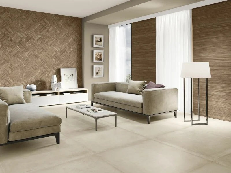 • Afmeting: 40x120 cm – grootformaat wandtegel met decoratief reliëfpatroon