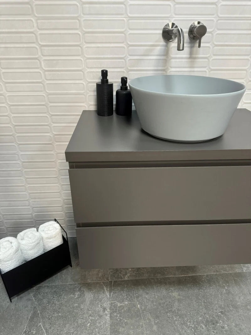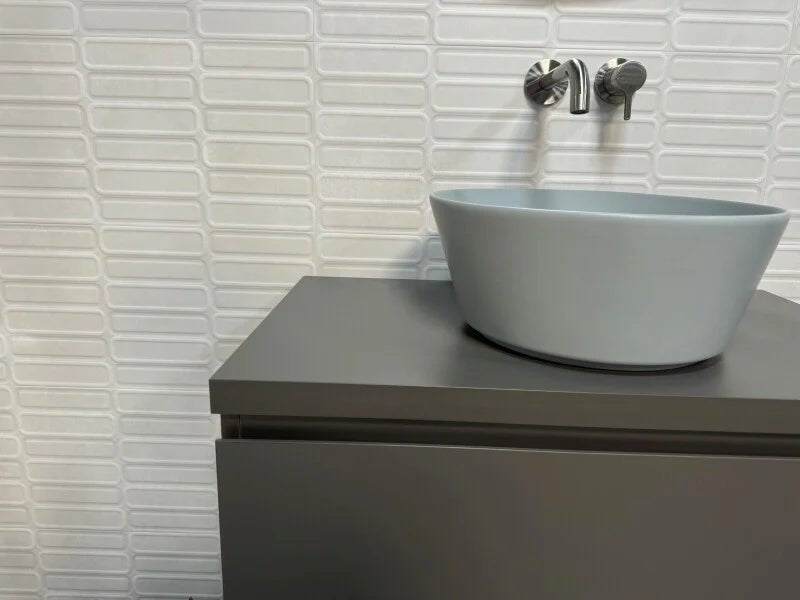 • Afwerking: mat – betonlook met zachte parelgrijze tint en decoratief oppervlak
