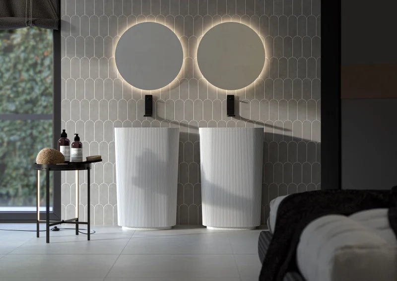 Een unieke wandtegel voor wie kiest voor verfijnde vormen met een stoere kleur. Ideaal om een luxe en eigentijdse look te creëren.