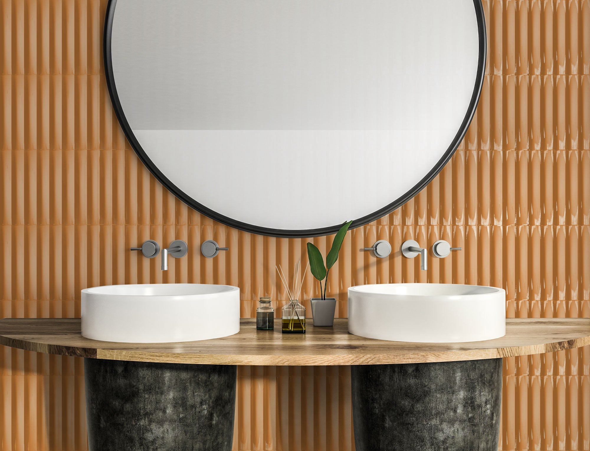 Deze tegel is ideaal voor wie een wand wil realiseren met visuele impact en karakter. Dankzij het langwerpige formaat en de glanzende afwerking ontstaat een onderhoudsvriendelijke wand die elegantie, diepte en warmte uitstraalt.
