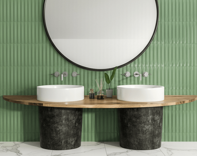 Geef je wand een stijlvolle en luxe uitstraling met de Wandtegel WoW Ovaal Bol 3D Relief Decor Forest Groen Glans 5×30 cm. Deze designtegel combineert een rijke forest-groene kleur met een glanzende afwerking en een opvallende ovale bol-3D-structuur, wat zorgt voor een krachtige en moderne uitstraling. De tegel is ontworpen voor uitsluitend verticale of horizontale plaatsing, waardoor het reliëf optimaal tot zijn recht komt.